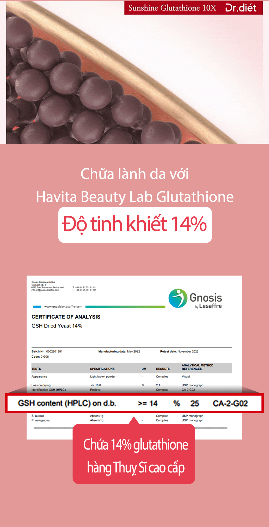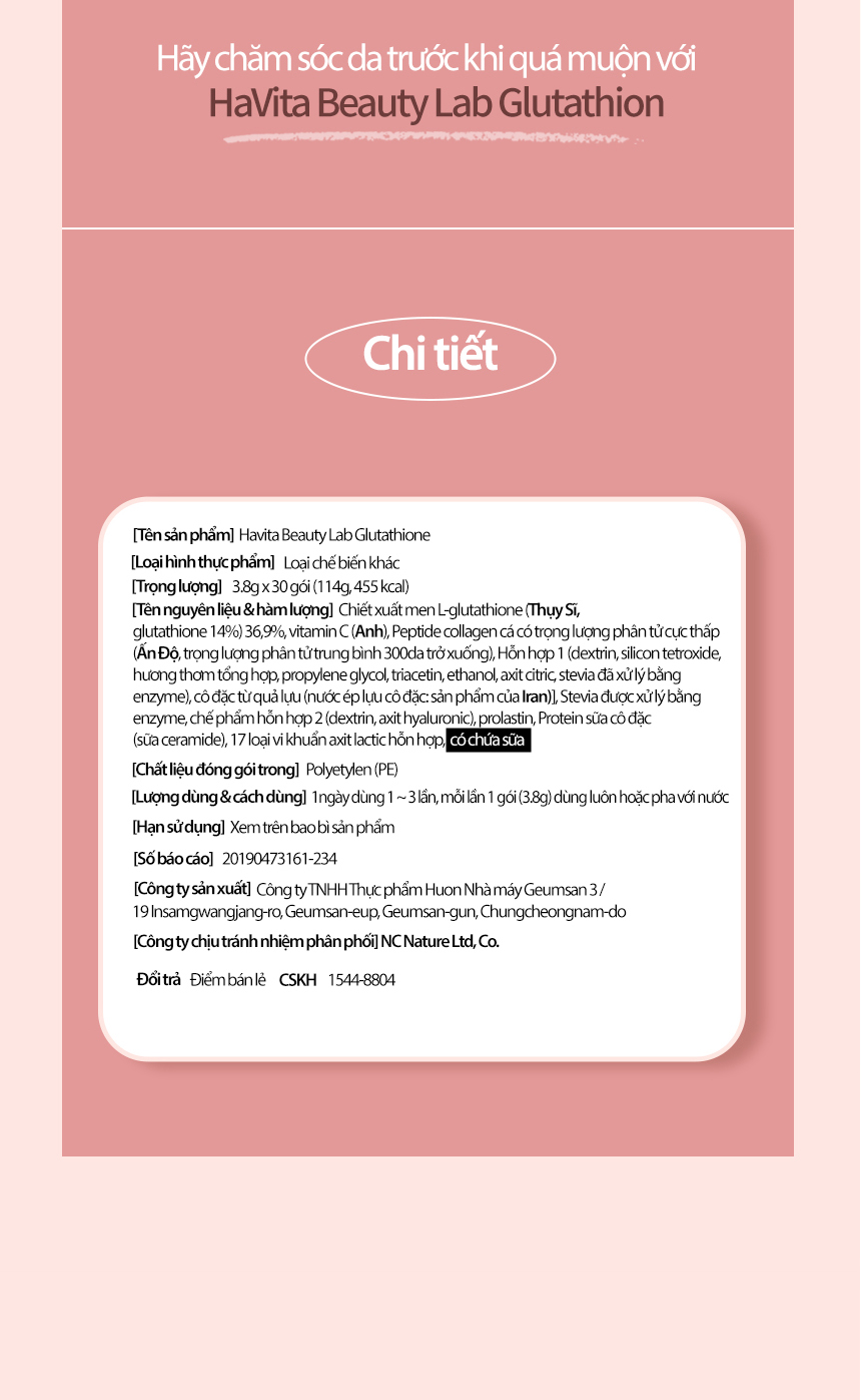Gói glutathione uống dạng bột Havita Beauty Lab Glutathione