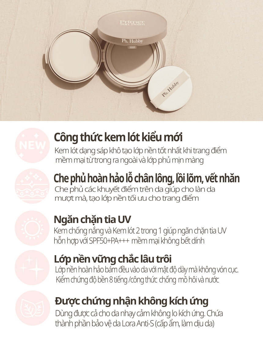 Kem Lót và Kem Chống Nắng 2 trong 1 PH. HUBBY Primer Sun Balm SPF50+ PA+++